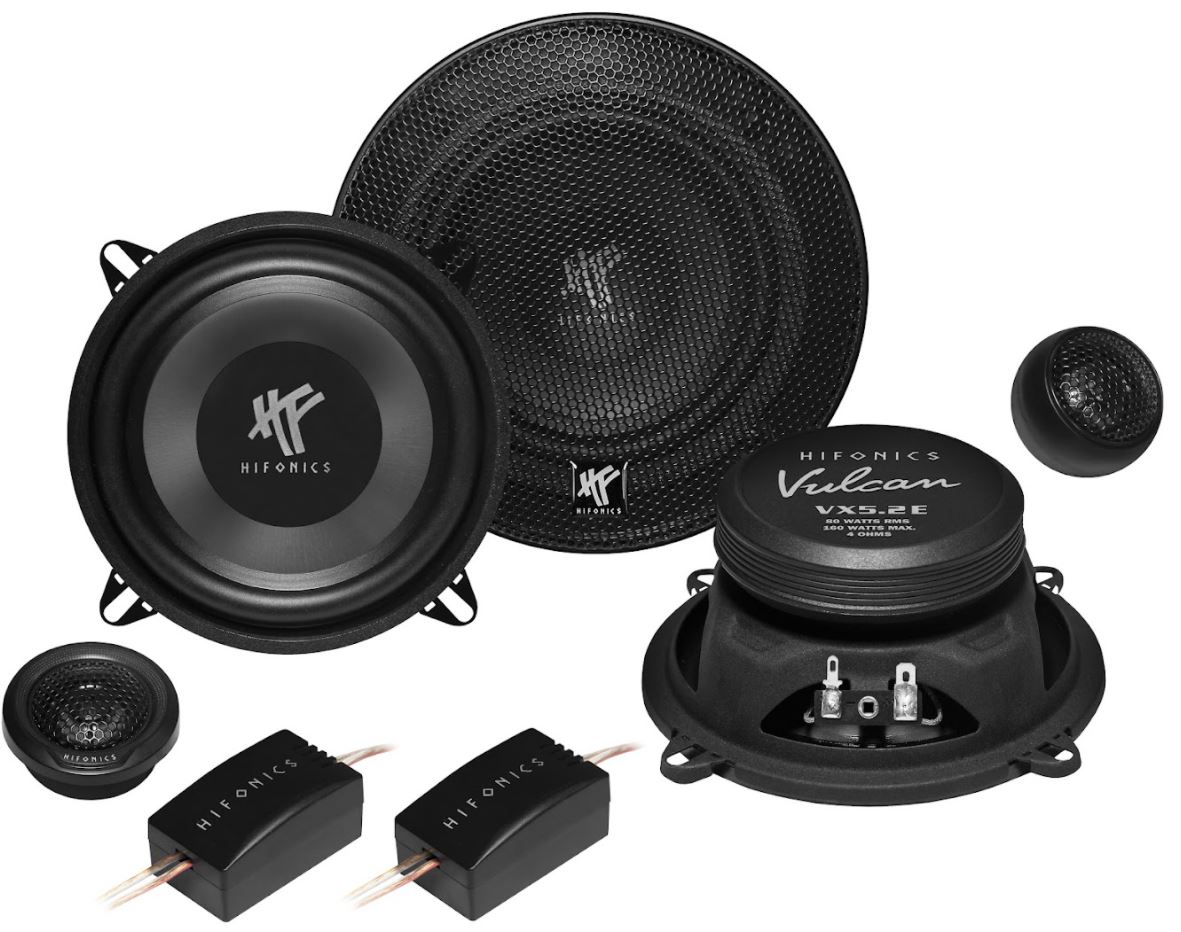 Mit der VULCAN VX Serie erweitert HiFonics seine Lautsprecherpalette mit grundsoliden und auf Preis/Leistung optimierte Modelle, die den Car Hifi Fan nichts vermissen lassen. Das VULCAN VX Komponenten-System VX6.2C beinhaltet hochwertige 12dB Frequenzweichen mit 3-stufiger Hochton-Pegelanpassung und detailliert spielenden 25 mm Gewebe-Hochtönern. Sowohl die Midbass-Woofer als auch die Hochtöner des 16,5 cm Sets sind paarweise separat erhältlich. Ergänzend sind die VX6.2E und VX5.2E Systeme mit einbaufreundlichen Kabelfrequenzweichen erhältlich.