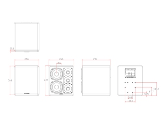 Die Konfiguration mit zwei 5,25"-150-Tieftönern verwendet ein Pin-Cushion-Korbdesign mit schmalem Korbflansch, um die enge Platzierung von zwei Tieftönern auf einer kompakten Schallwand zu ermöglichen. Die bescheidenen Abmessungen der Schallwand gewährleisten die strukturelle Integrität und eliminieren gleichzeitig destruktive Beugungserscheinungen.